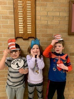 Kindergarten class honors Dr. Seuss Day with our photo booth filled with props from their favorite books!
